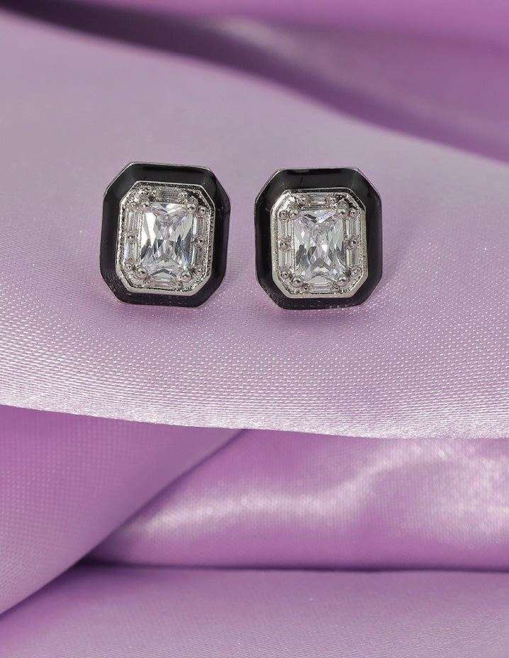 Designer Black Frame Crystal Stud Earrings