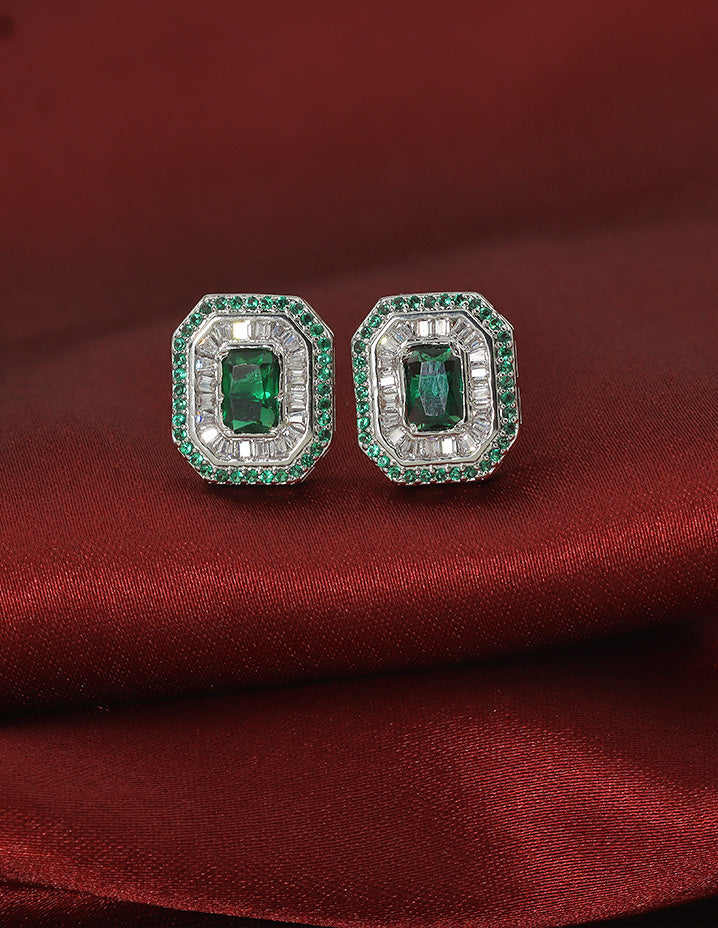 Exude timeless elegance with these emerald-green studs, framed in sparkling white and green stones—perfect for a regal and refined look.