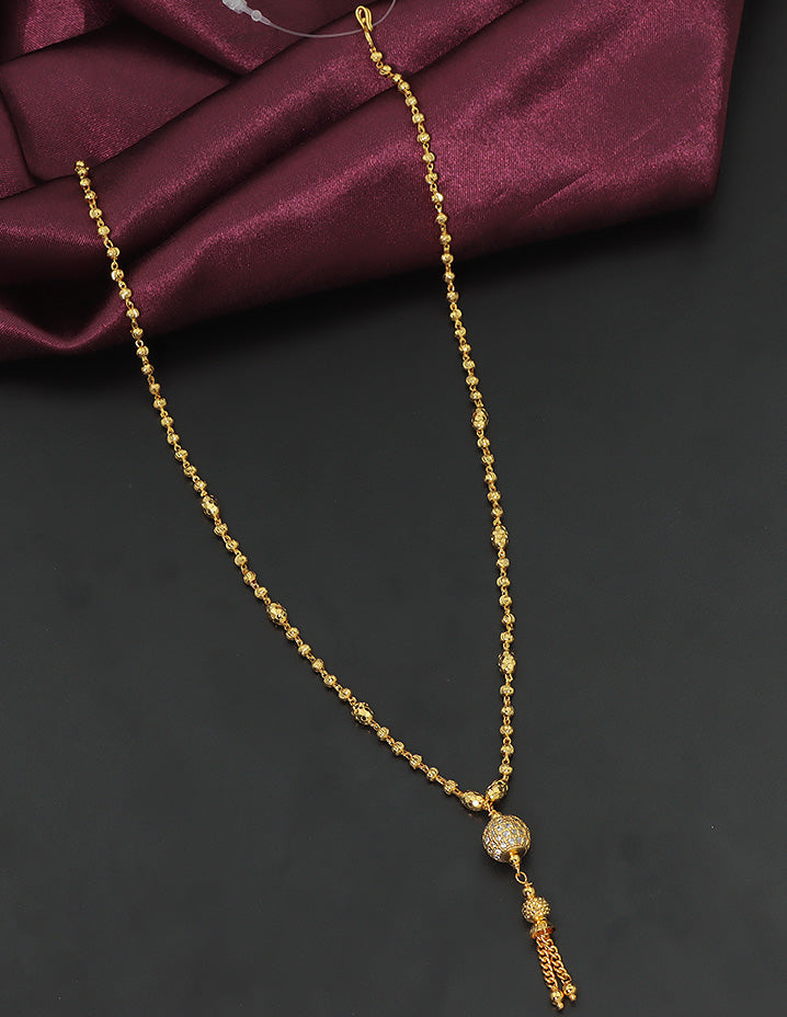 Sleek and sophisticated gold-toned chain with a sparkling ball pendant and delicate tassel drop—perfect for everyday elegance or special occasions.