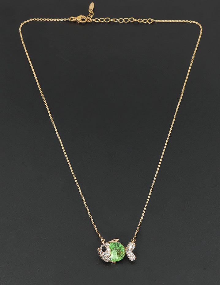 This beautiful designer fish chain pendant is made of a high-quality tensile alloy that's lightweight and fun. The pendant is a dazzling Swarovski crystal.