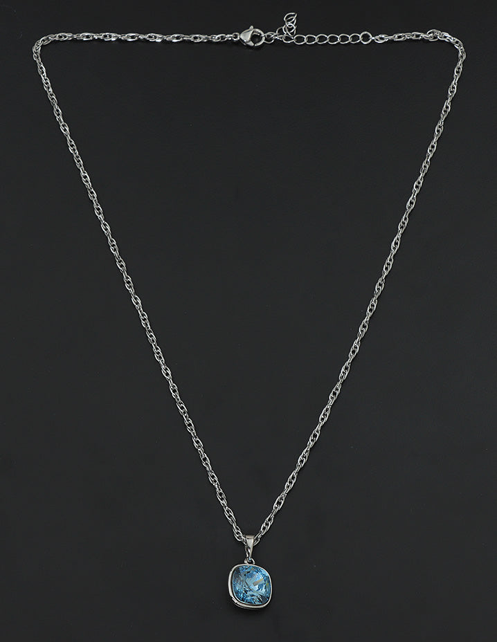 A dreamy cushion-cut Aqua Blue crystal pendant set in sleek silver — perfect for adding a soft shimmer to any outfit. 🌙💜✨