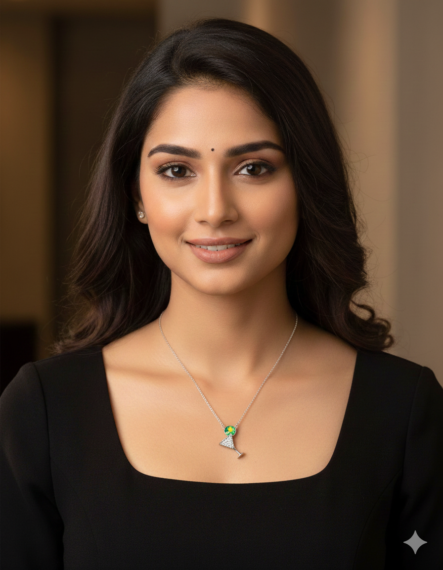 Add a splash of glam to your look with this chic martini glass pendant, topped with a shimmering blue crystal — perfect for party vibes! 🍸💙✨
